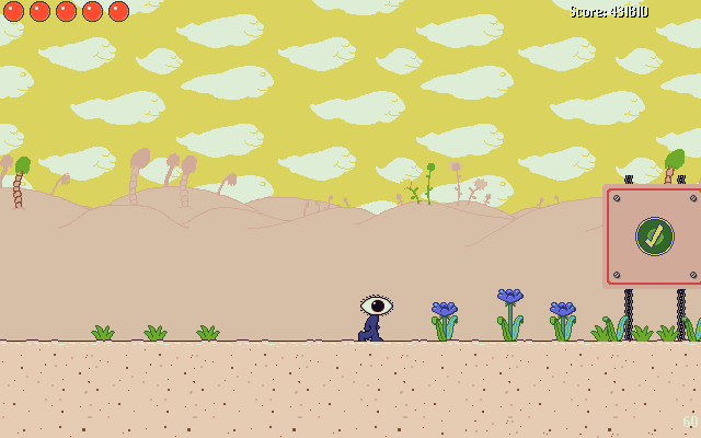 You are an anthropomorphic mutant eyeball who can shoot lasers! Explore this strange and mysterious world